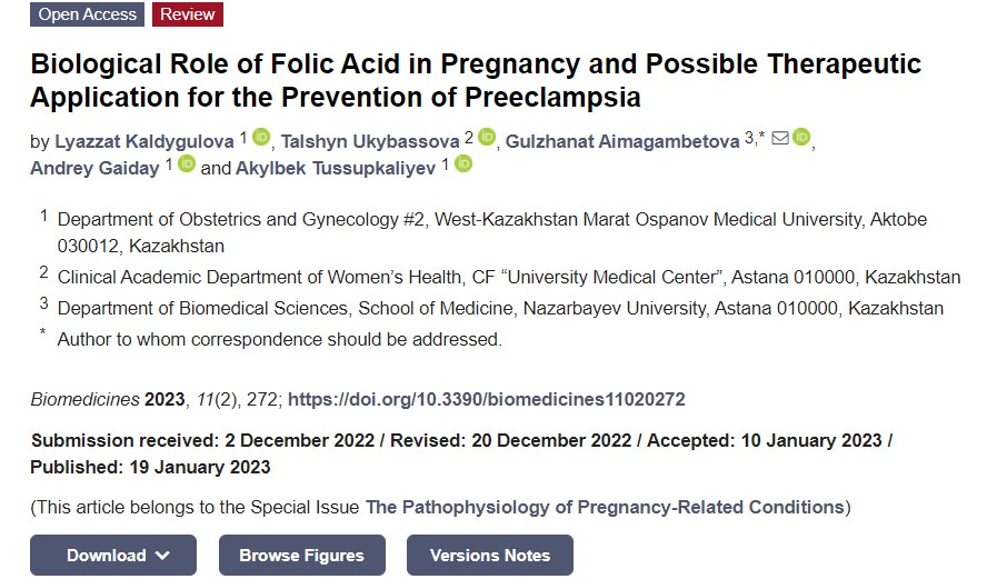 [1] Kaldygulova L, Ukybassova T, Aimagambetova G, et ai. Foolihapon biologinen rooli raskaudessa ja mahdollinen terapeuttinen Hakemus preeklampsian ehkäisyyn. Biomedicines, 2023, 11(2): 272.https://doi.org/10.3390/biomedicines11020272